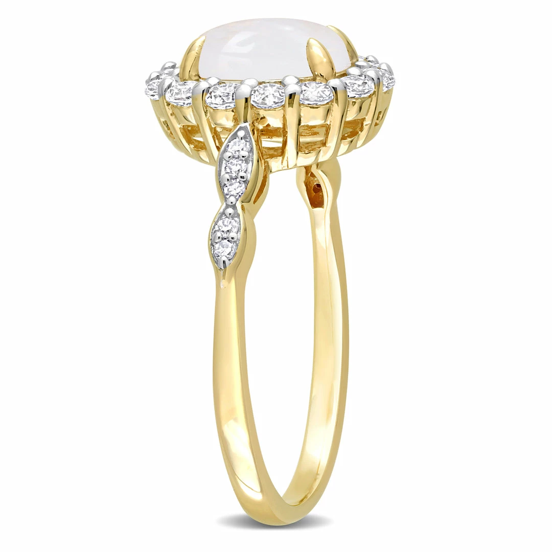 Best deal ❤️ Mimi & Max 1 1/2 CT TGW Oval Shape Opal and White Topaz and Diamond Accent Halo Ring in 14K Yellow Gold for 👩 women 🎁