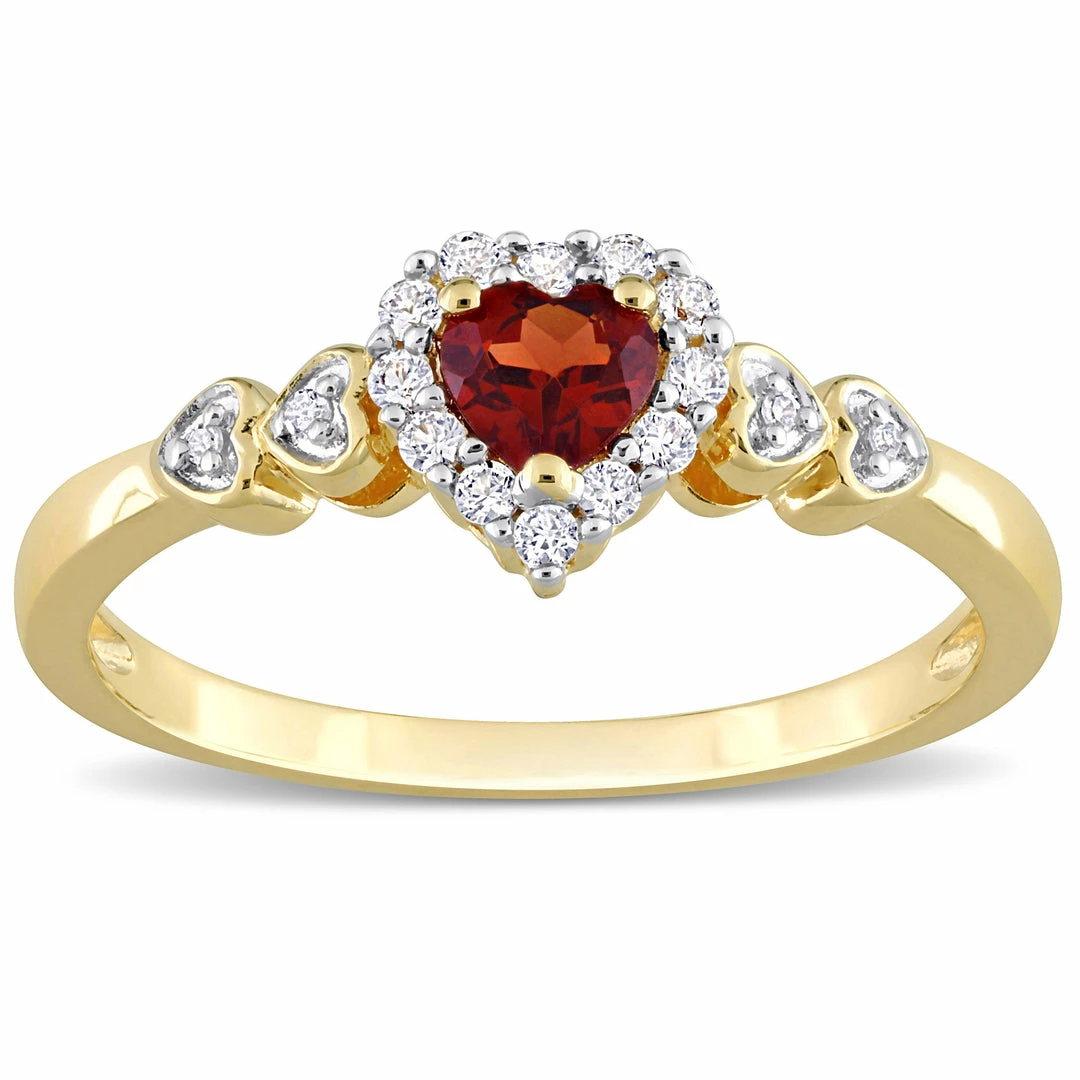 Flash Sale ๐ฅฐ Mimi & Max 1/2 CT TGW Heart Shaped Garnet and Created White Sapphire with Diamond Accent Halo Promise Ring in Yellow Plated Sterling Silver for ๐ฉ women ๐คฉ