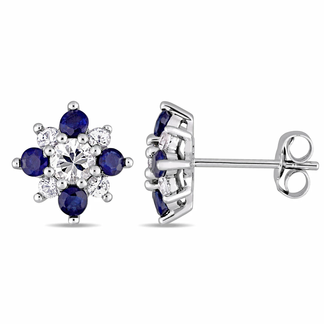 Flash Sale ๐ Mimi & Max 1 3/5 C TGW Blue and White Sapphire Floral Stud Earrings in 14KWhite Gold for ๐ฉ women ๐