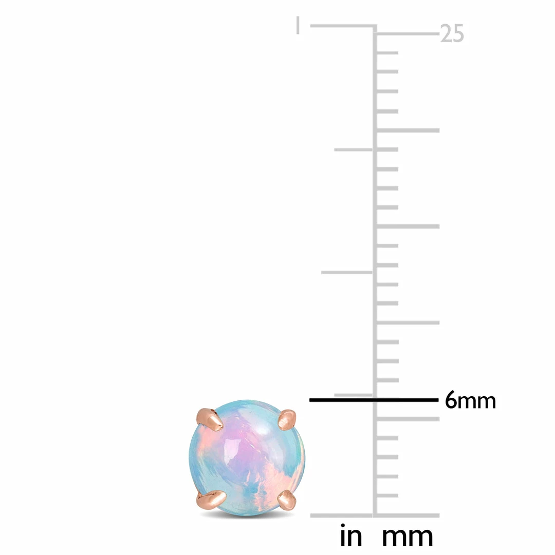 Go stylish by showing off these colorful opal stud earrings. These trendy earrings are crafted in gleaming 10-karat rose gold and feature two round cabochon flat bottom-cut Ethiopian opal-blue gemstones in a 4-prong setting. Polished to a brilliant shine, these earrings are secured with butterfly clasps. This classic pair of earrings is handcrafted to appeal to the ever-changing taste of women and will compliment any outfit.