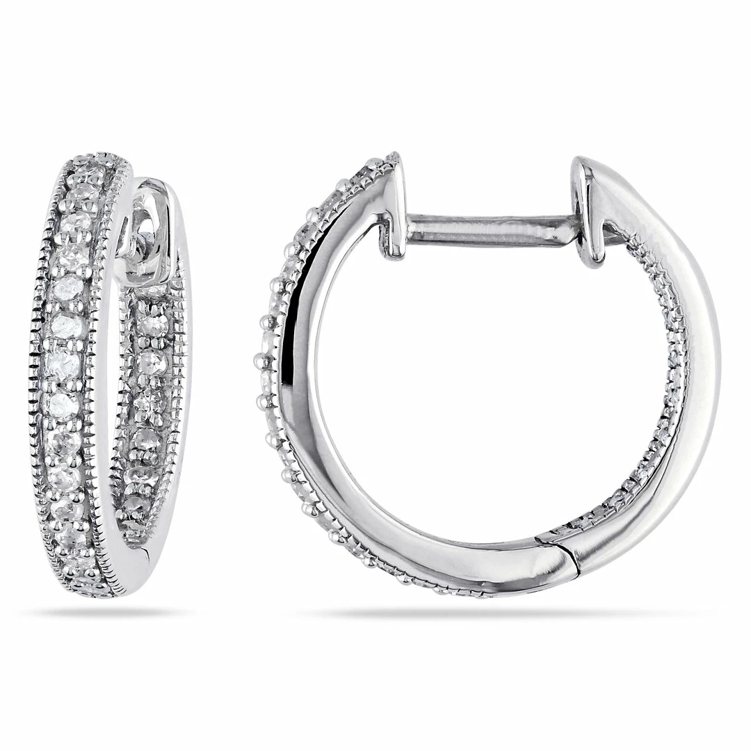Best Sale ⌛ Mimi & Max 1/4 CT TW Inside Outside Diamond Hoop Earrings in 14K White Gold for 👩 women 💯