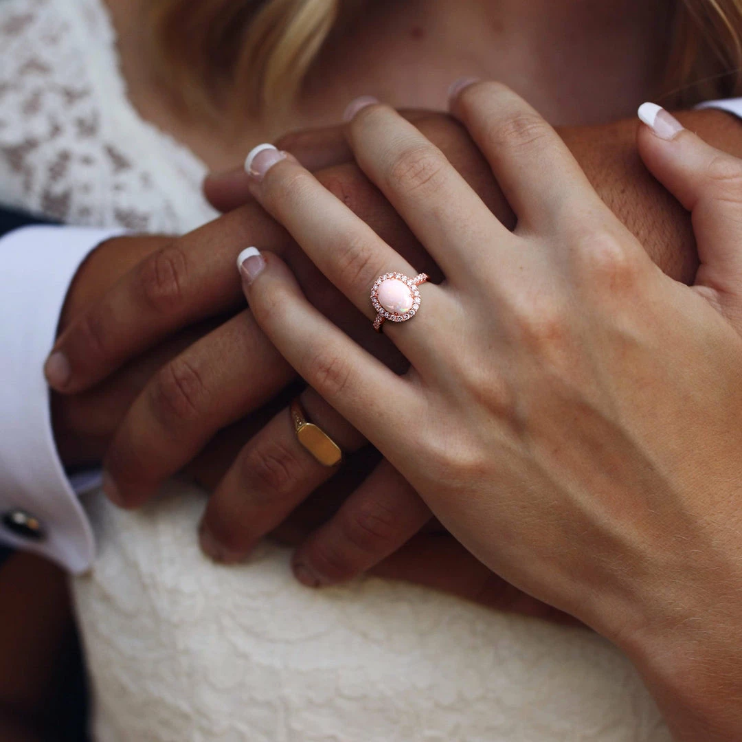 Budget ๐ Mimi & Max 1 5/8 CT TGW Opal and 2/5 CT TW Diamond Halo Ring in 14K Rose Gold for ๐ฉ women ๐งจ