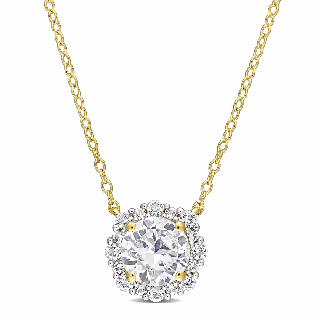 Top 10 ๐ Mimi & Max 1 7/8 CT TGW Created White Sapphire Halo Necklace in Yellow Plated Sterling Silver for ๐ฉ women ๐