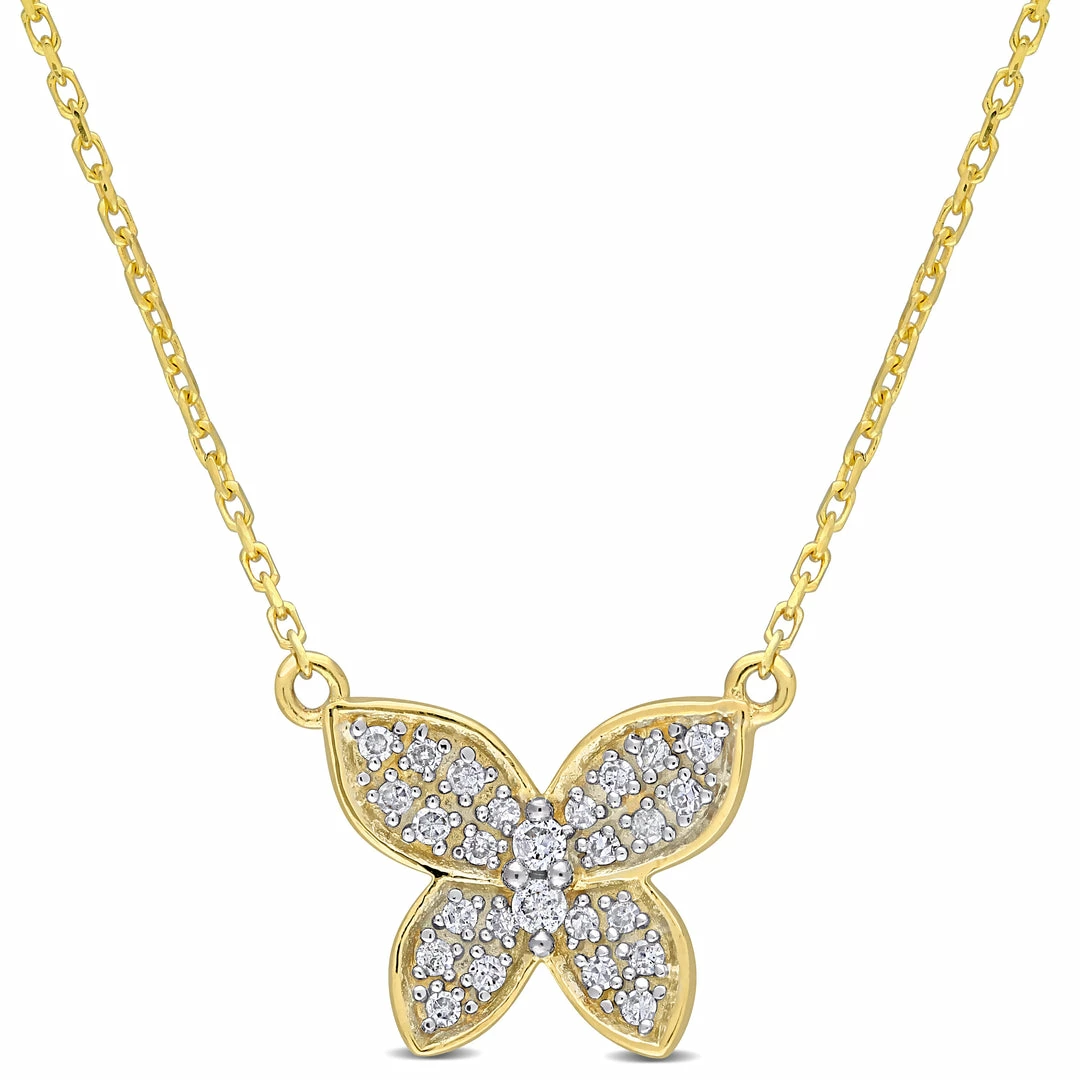Best Pirce 🛒 Mimi & Max 1/8 CT TW Diamond Butterfly Pendant with Chain in 10K Yellow Gold for 👩 women ⌛