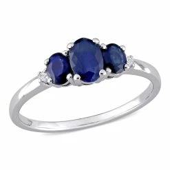 Discount ๐งจ Mimi & Max 1 CT TGW Oval Sapphire 3-Stone Ring with 0.02 CT TW Diamond in 10K White Gold for ๐ฉ women ๐