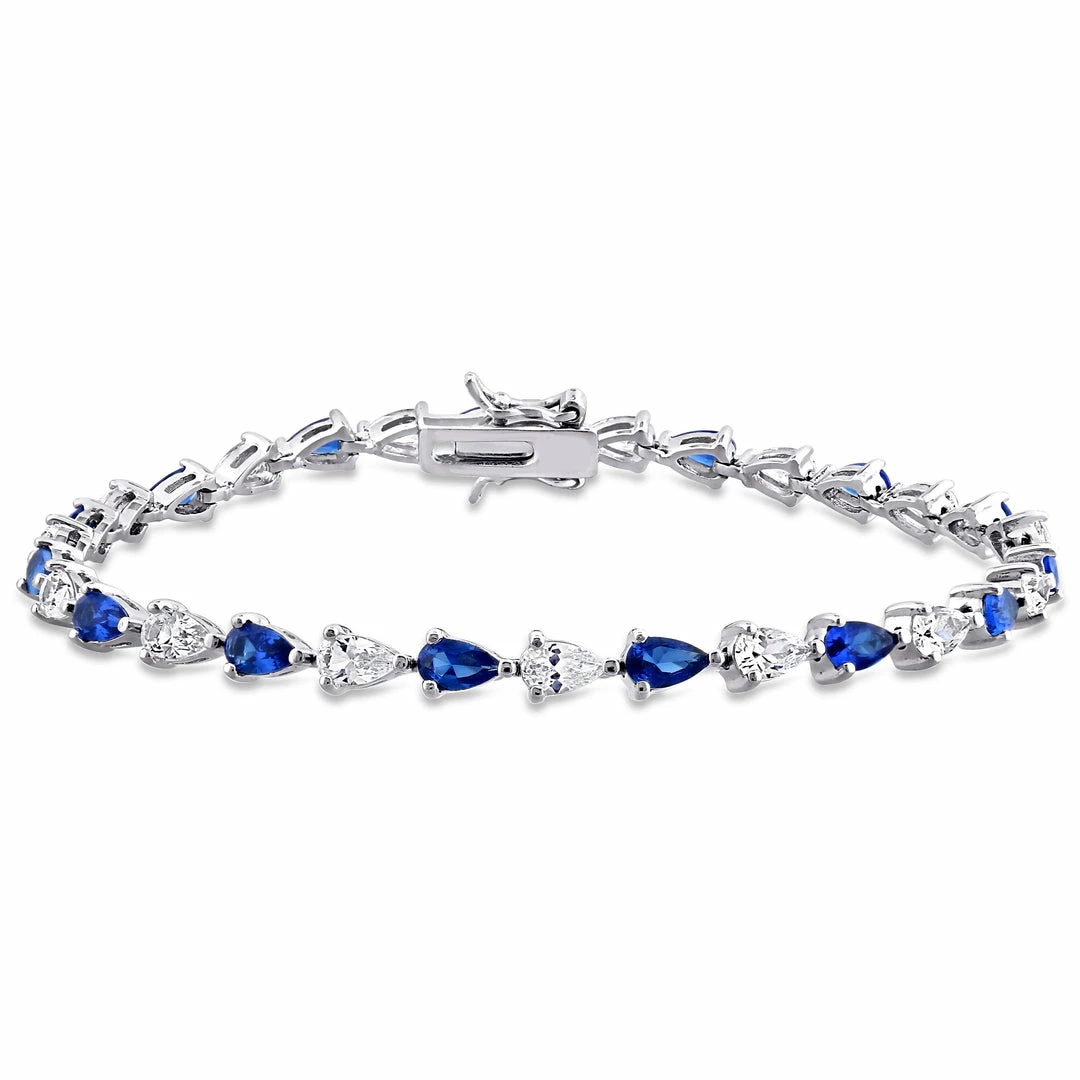 Promo ๐ฏ Mimi & Max 10 1/2 CT TGW Pear Shape Created Blue and White Sapphire Tennis Bracelet in Sterling Silver for ๐ฉ women ๐