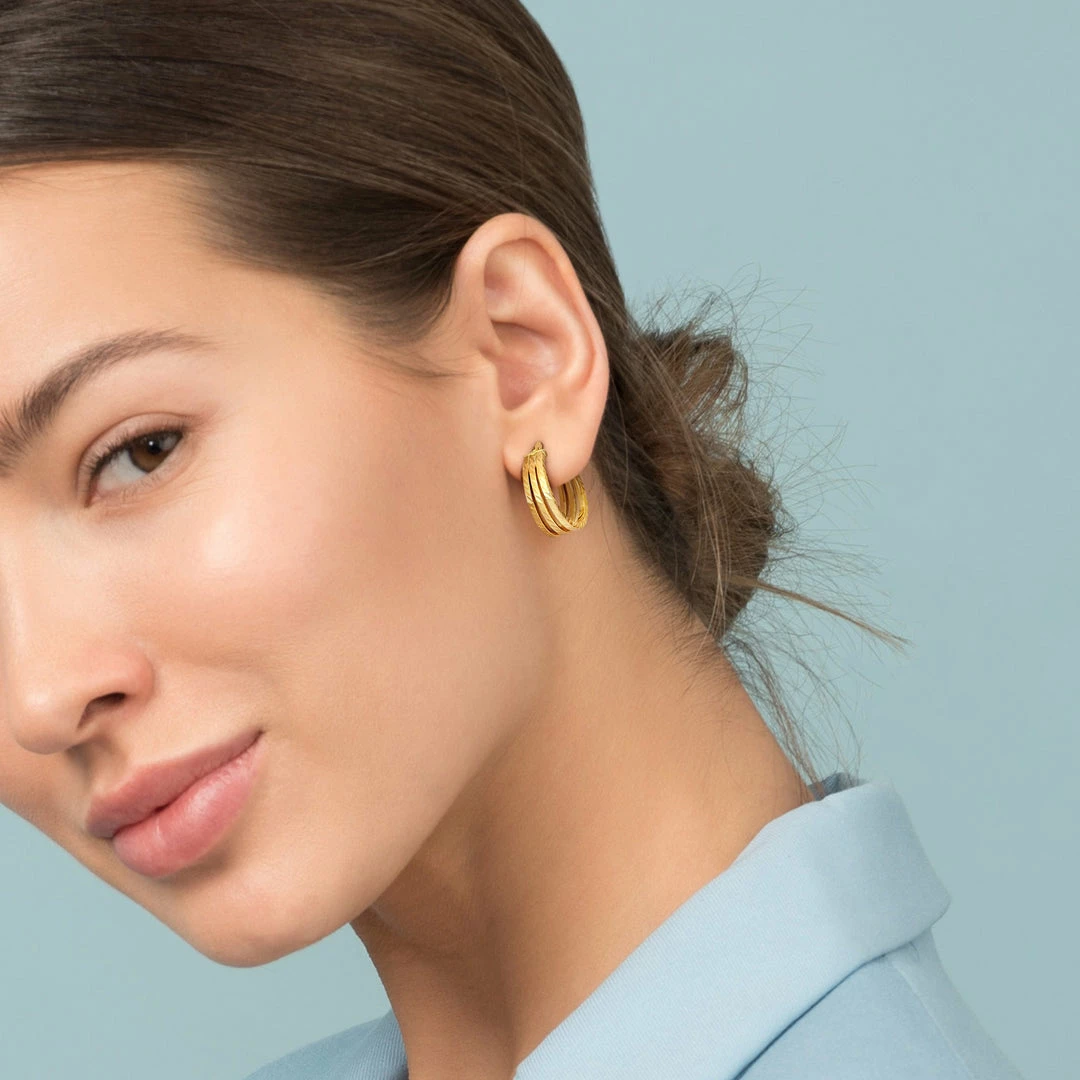 Outlet 🔔 Mimi & Max 19 MM Triple Row Textured Hoop Earrings in 14K Yellow Gold for 👩 women 👍
