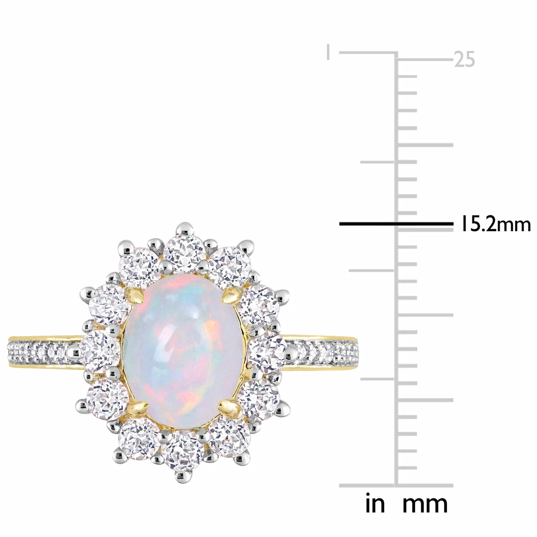 Discount โจ Mimi & Max 2 1/6 CT TGW Oval Shape Blue Ethiopian Opal and White Topaz and 1/10 CT TW Diamond Halo Ring in Yellow Plated Sterling Silver for ๐ฉ women ๐งจ