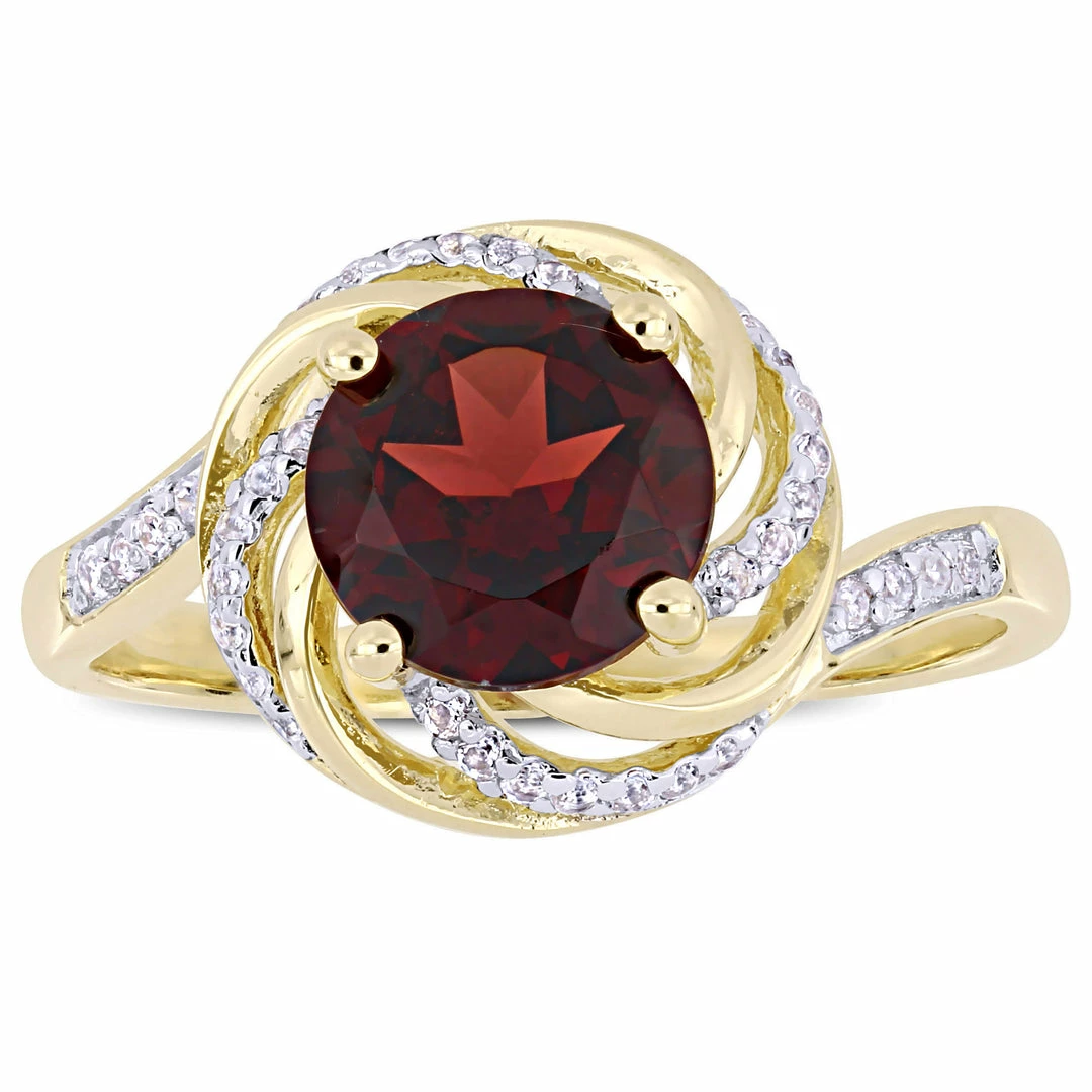 Cheap 😍 Mimi & Max 2 1/7 CT TGW Garnet White Topaz and Diamond Swirl Ring in Yellow Plated Sterling Silver for 👩 women 🎁