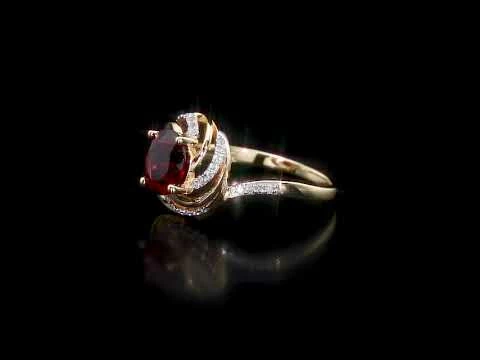 This unique garnet, white topaz and diamond halo ring from the Collection is crafted in yellow plated sterling silver and features a round cut, prong set garnet at the center with 28 round cut, buttercup set white topaz and eight round cut, prong set diamond accents set together in a modern swirl halo design.This ring is perfect for a woman who seeks simplicity and elegance in her everyday look.This piece is sure to make a valuable and valuable addition to any jewelry collection.A lovely piece for that special January birthday in your life.Gemstone colors – Red, white Gemstone shapes – Round 1 prong set round cut garnet gemstone Gemstone weight – 2 carats 28 prong set round cut white topaz gemstones Gemstone weight – 1/6 carat Total gemstone weight – 2 1/6 carats Diamonds – Eight Diamond cut – Round Diamond weight – 0.04 carat Color – G H Clarity – I2-I3 Setting – Prong Metal – Yellow silver Finish – High polish Metal weight – 3.78 grams Diamond total weight – 0.04* carat TW All weights and measurements are approximate and may vary slightly from the listed information.*T.W.(total weight) may vary and is a minimum of 0.035 carat.Treatment code E (garnet, white topaz) and N (white diamonds).See Treatment Guide for further information.This ring cannot be resized.
