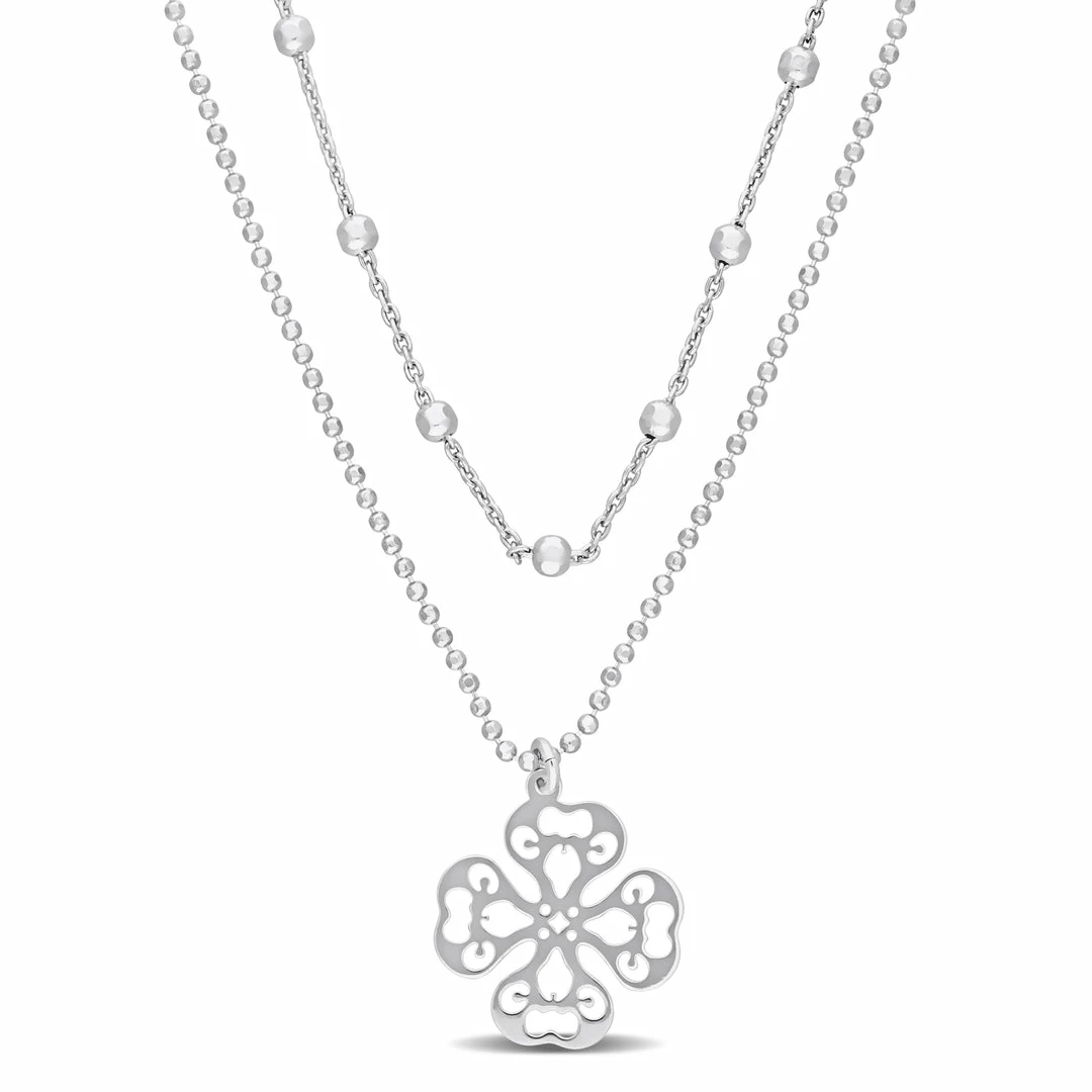 Be the epitome of sophistication with this elegant Ball and Bead Multi-Strand Necklace. Mounted in sparkling sterling silver, this enchanting 19-inch necklace features beads placed at regular intervals with a clover style design pendant. This dainty necklace is securely and comfortably fastened with a lobster clasp. Polished to a brilliant shine and made in Italy, this ravishing necklace is perfect for layering with other neckpieces.