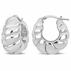 Discount 😍 Mimi & Max 22 MM Ribbed Hoop Earrings in Sterling Silver for 👩 women 🔥
