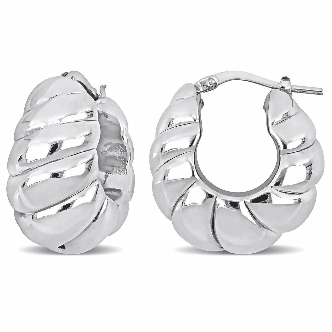 These opulent ribbed hoop earrings are the prefect choice for an evening out. Crafted in elegant sterling silver, they feature a ribbed hoop design for a delicate and fun look. These earrings are the perfect way to show off your personal style. These earrings are secured with clip-back closures. Dazzle and awe everyone around you with these cute earrings.