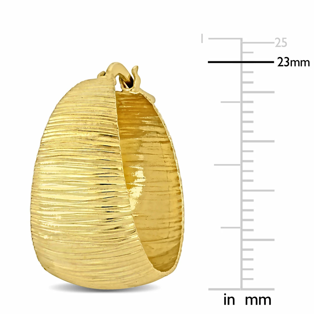 These seductive textured hoop earrings will give you a flirty charm. Crafted in yellow plated sterling silver, they feature an attractive textured pattern for a soft and delicate look. These earrings come fastened with clip-back closures. Coordinate these earrings with any ensemble for that special evening or dressy occasion and elevate your look.