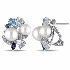 Cheap ๐คฉ Mimi & Max 3 1/2 CT TGW Created White Sapphire, Multicolor BlueTopaz and White Cultured Freshwater Pearl Cluster Earrings in Sterling Silver for ๐ฉ women ๐ฅฐ