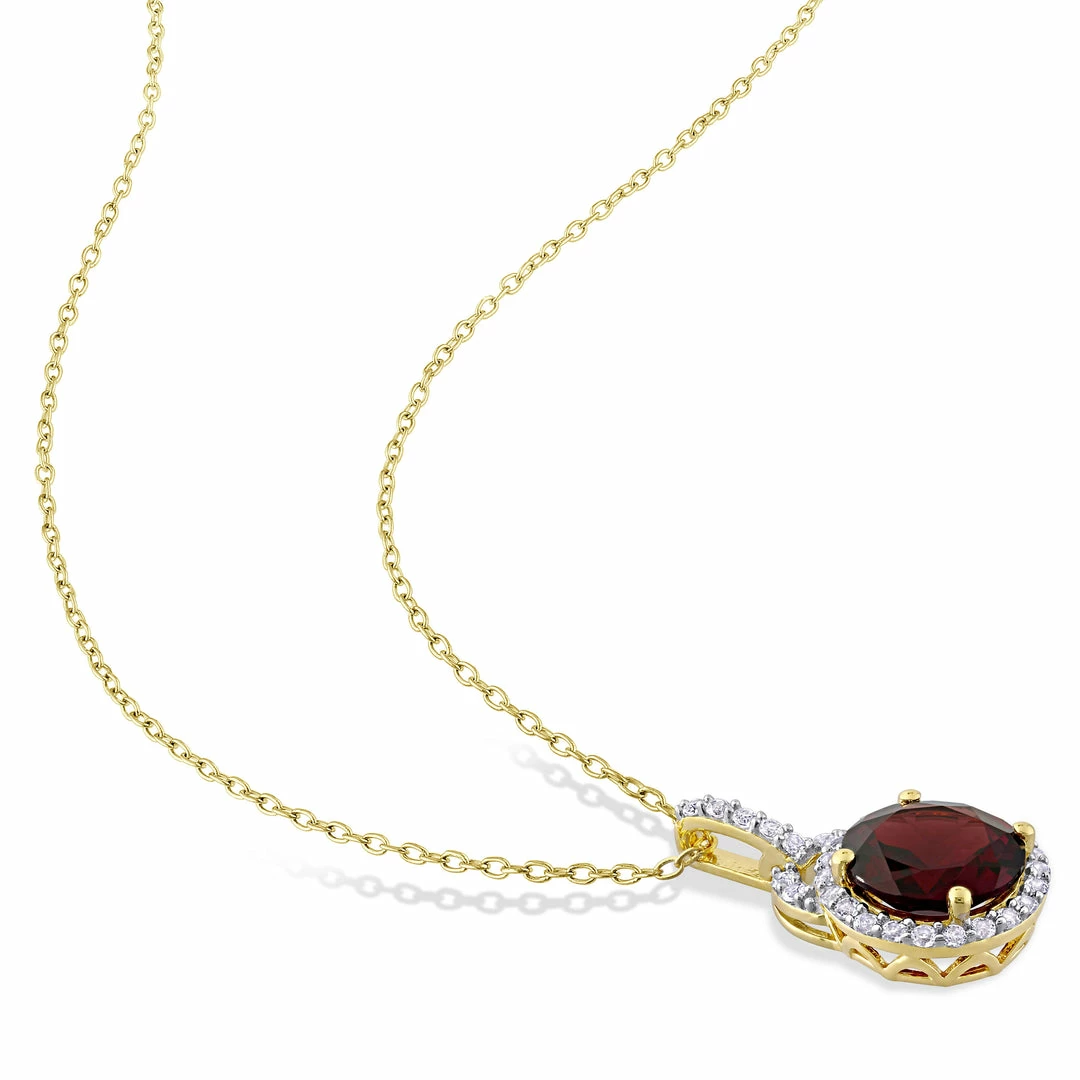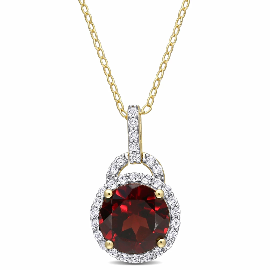 Budget ๐ Mimi & Max 3 1/2 CT TGW Garnet and White Topaz Pendant with Chain in Yellow Plated Sterling Silver for ๐ฉ women โค๏ธ