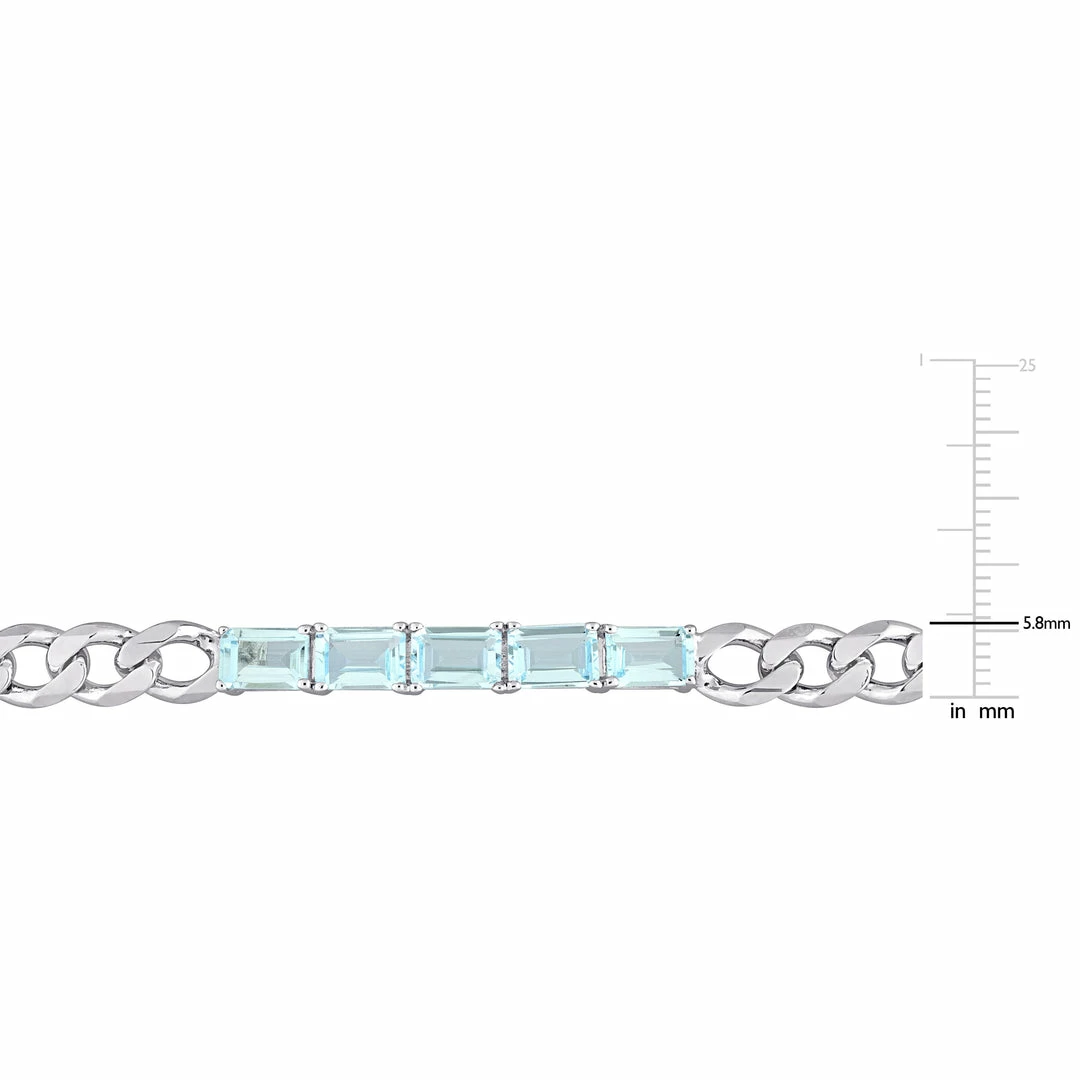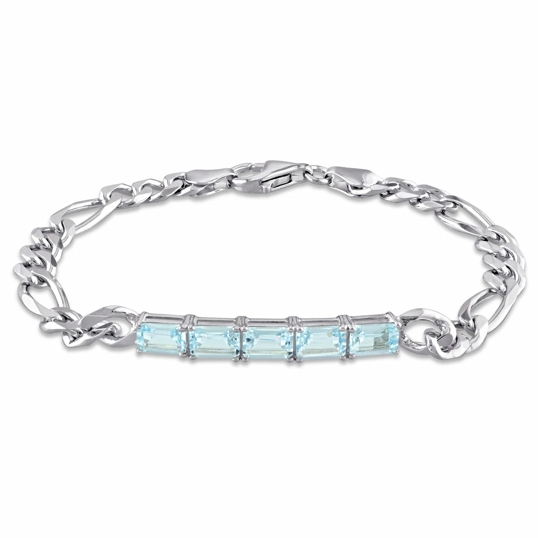This lovely bar-tennis chain bracelet is crafted in shimmering sterling silver. This bar-tennis bracelet features five octagon-cut, prong-set, glittering sky blue topaz gemstones that are beautifully embellished on the bracelet in the bar in a tennis style. This dazzling tennis bracelet is suspended on 7.25-inch figaro chain and secures with a lobster clasp. This gorgeous bracelet is sure to melt her heart. This bracelet is the perfect for a woman who seeks simplicity and elegance.