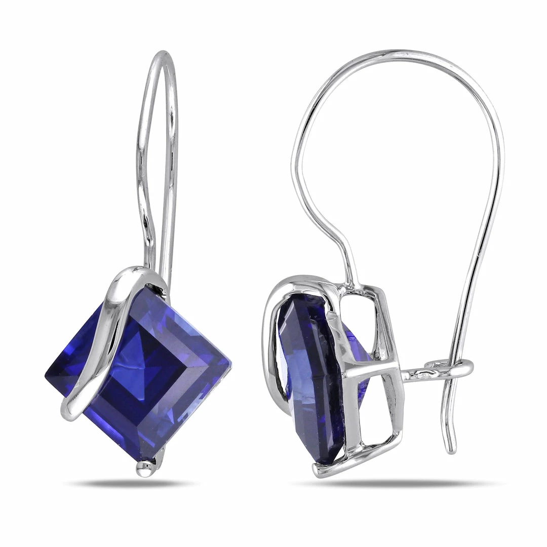 Pamper yourself with these classy Created Blue Sapphire Euro Back Earrings. Crafted in sparkling white gold, these radiant earrings feature two square-cut, prong set, created blue sapphire gemstones (7 x 7 mm). Polished to a brilliant shine, these splendid earrings are comfortably secured with clip-in closures. An accessory that will bring out the creativity in you.