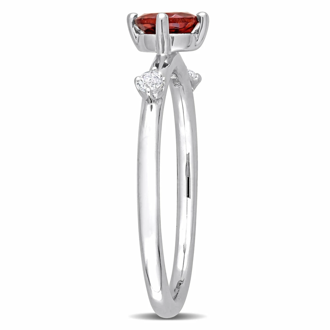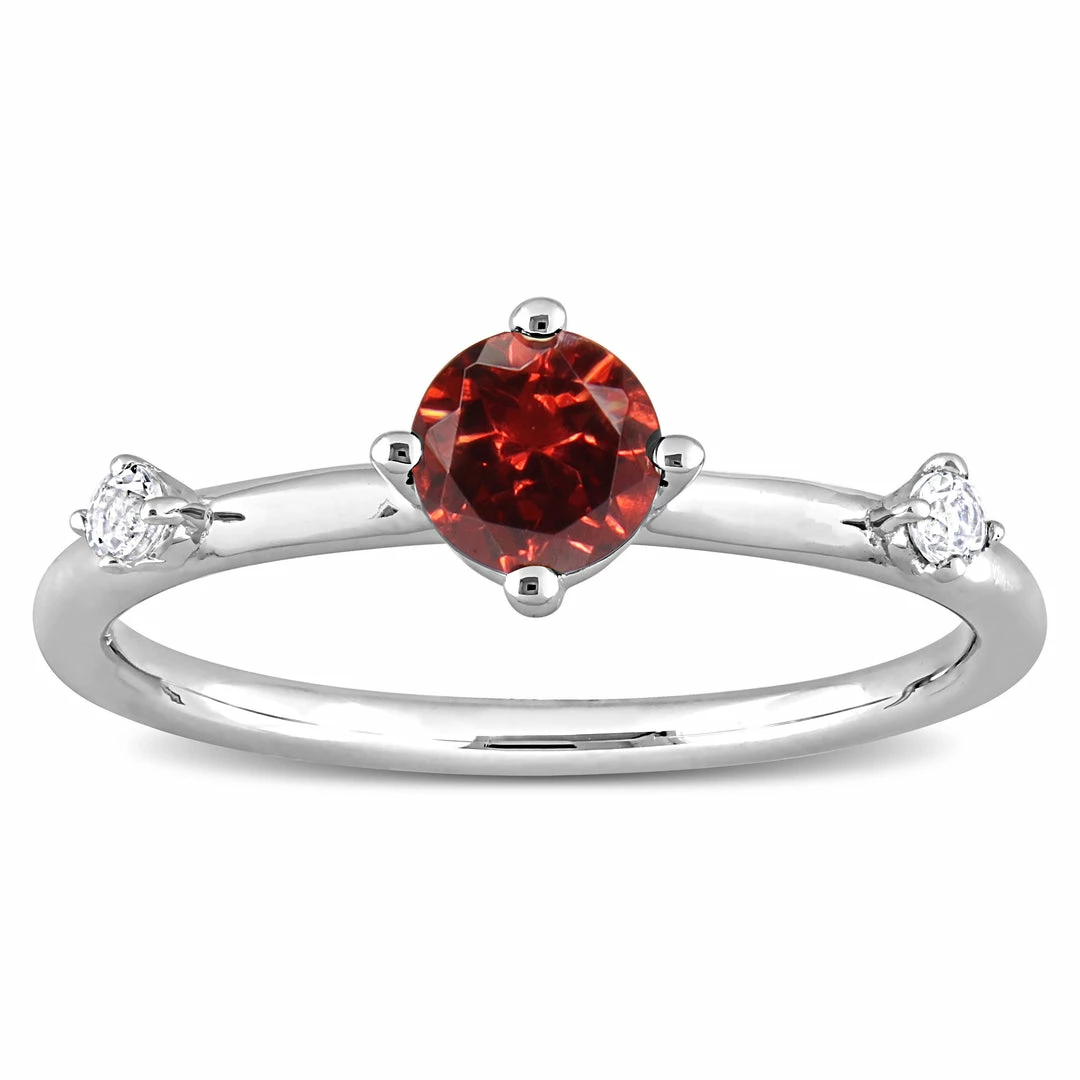 Hot Sale 🔔 Mimi & Max 3/4 CT TGW Garnet and White Topaz 3-Stone Ring in Sterling Silver for 👩 women ❤️