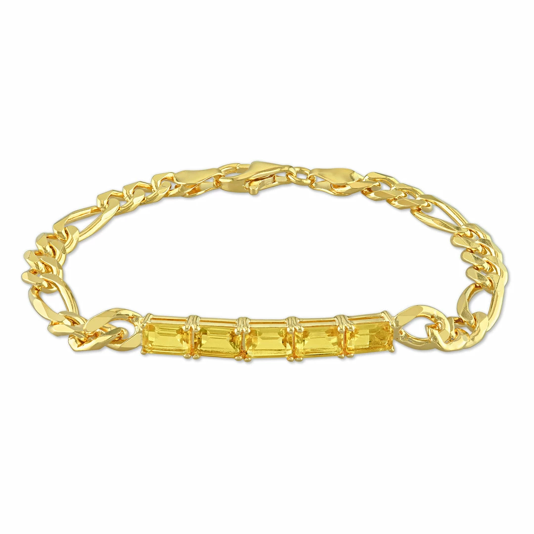 This elegant bar-tennis chain bracelet is crafted in sparkling yellow plated sterling silver. This bar bracelet features five octagon-cut, prong-set, glittering citrine gemstones that are beautifully embellished on the bracelet. This dazzling bar-tennis bracelet is suspended on 7.25-inch figaro chain and secures with a lobster clasp. Jazz up your outfit with this stunning bracelet.