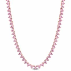 Outlet 😉 Mimi & Max 31 1/2 CT TGW Heart Created Pink Sapphire Tennis Necklace in Rose Plated Sterling Silver for 👩 women 🔔