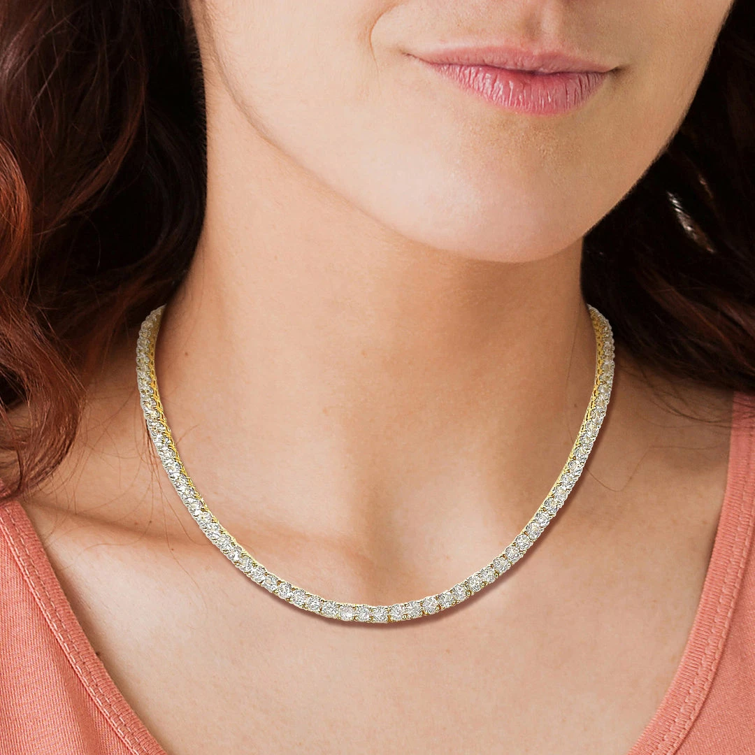 Wholesale โ๏ธ Mimi & Max 33 CT TGW Created White Sapphire Tennis Necklace with Extender in Yellow Plated Sterling Silver for ๐ฉ women ๐คฉ
