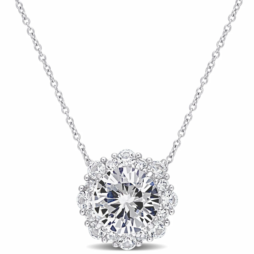 Hot Sale 🥰 Mimi & Max 4 3/8 CT TGW Created White Sapphire Halo Pendant with Chain in 10k White Gold for 👩 women ✨