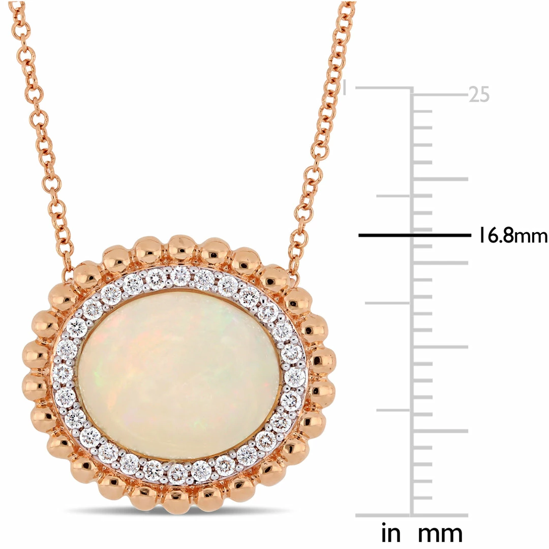 Hot Sale โจ Mimi & Max 5 CT TGW Oval-Cut Ethiopian Blue-Hued Opal and 1/4 CT TW Diamond Necklace in 14K Rose Gold for ๐ฉ women ๐