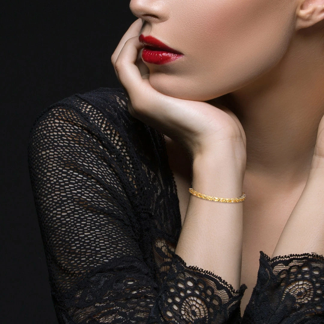This Citrine Bangle is certain to take her breath away. Crafted in glossy yellow rhodium-plated sterling silver, this bracelet features 15 oval-cut, prong-set citrine gemstones (6 x 4 mm) forming a line along the bangle. This unique gemstone bangle is sure to add a touch of elegance and class to any occasion. Polished to a brilliant shine, this elegant citrine bangle comfortably secures with a pressure tongue clasp and is a memorable gift for your beloved.