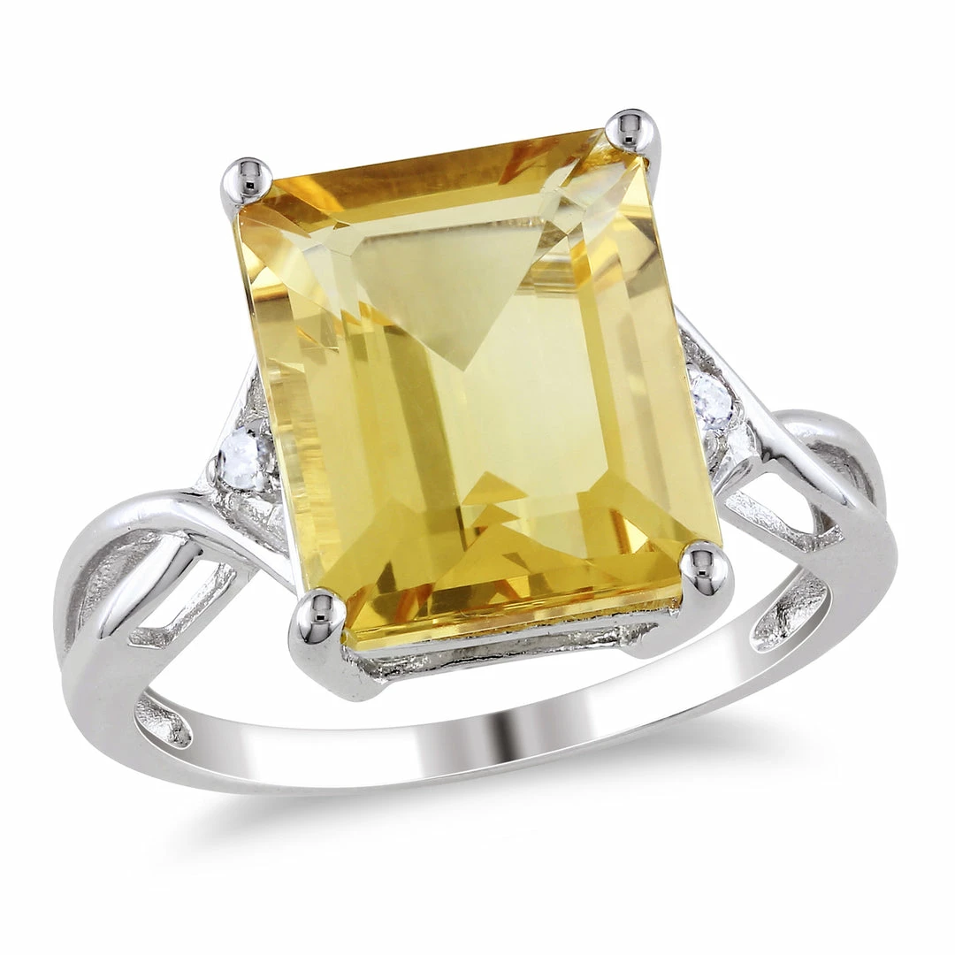 Best Pirce ๐ Mimi & Max 6 5/8 CT TGW Emerald Cut Citrine and White Topaz Ring in Sterling Silver for ๐ฉ women โ
