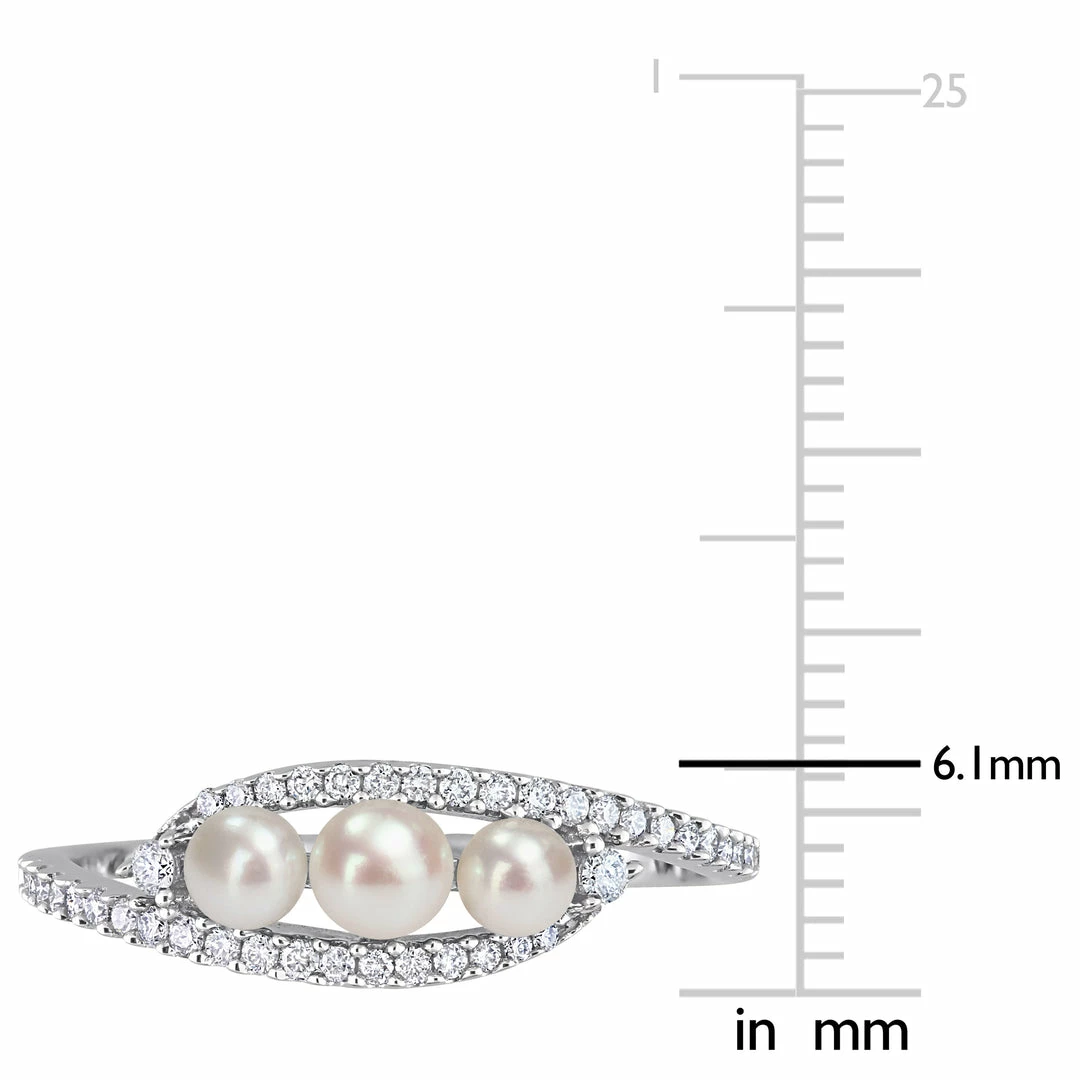 New 😀 Mimi & Max Cultured Freshwater Pearl and 1/5 CT TDW Diamond Bypass Ring in 14k White Gold for 👩 women 🤩