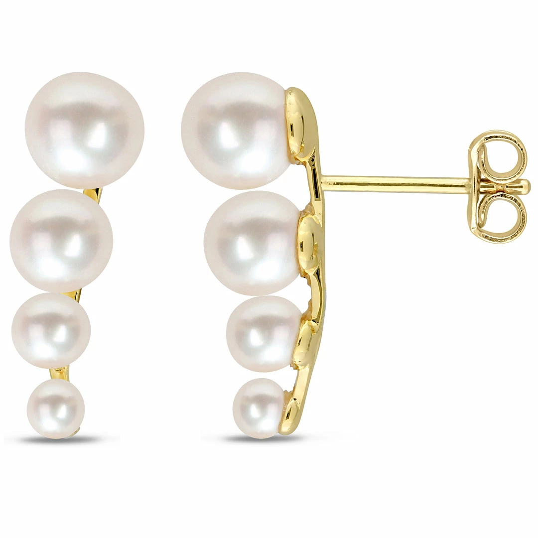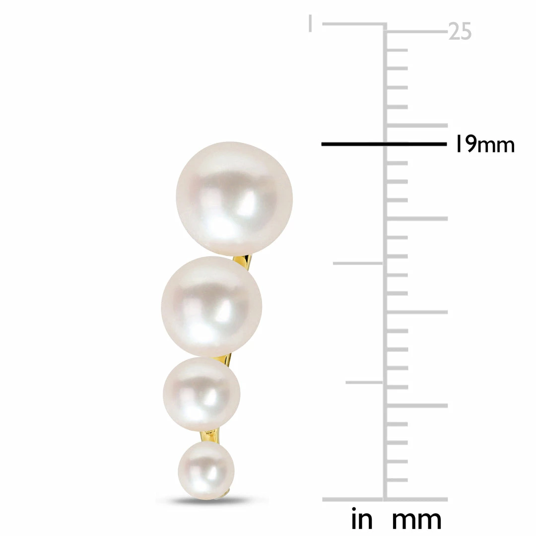 These pretty linear graduated earrings are crafted in yellow plated sterling silver and feature eight round-shaped, freshwater cultured pearls studded in a graduated style. Polished to a brilliant shine, these twinkling earrings are sure to melt her heart. Make her feel like a princess with these trendsetting and glittering earrings.