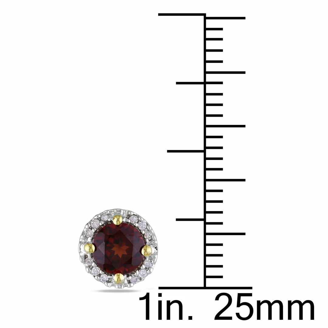 These brilliance stud earrings are made with round cut garnet gemstone and round cut white diamonds set in yellow gold.The earrings are secured with butterfly backs and glimmers with high polished accent.Style – Stud Gemstone color – Brown Gemstone shape – Round Two prong set round cut garnet each measure 5 mm Gemstone weight – 1 1/5 carats Total gemstone weight – 1 1/5 carat Diamonds – 24 Diamond cut – Round Diamond measurements – 0.8 mm wide x 0.8 mm long Diamond weight – 0.07 carat Color – G H Clarity – I2-I3 Setting – Buttercup Metal – 10k yellow gold Finish – High polished Clasp – Butterfly Metal weight – 1.55 grams Earring dimensions – 7.4 mm wide x 7.4 mm long Diamond total weight – 0.07 carat TW All carat weights and measurements are approximate and may vary slightly from the listed dimensions.*T.W.(total weight) is approximate.0.07 carat T.W.may be 0.065 to 0.075 carat.Treatment code N (garnet) and N (white diamonds).See Gemstone Treatments for further information.