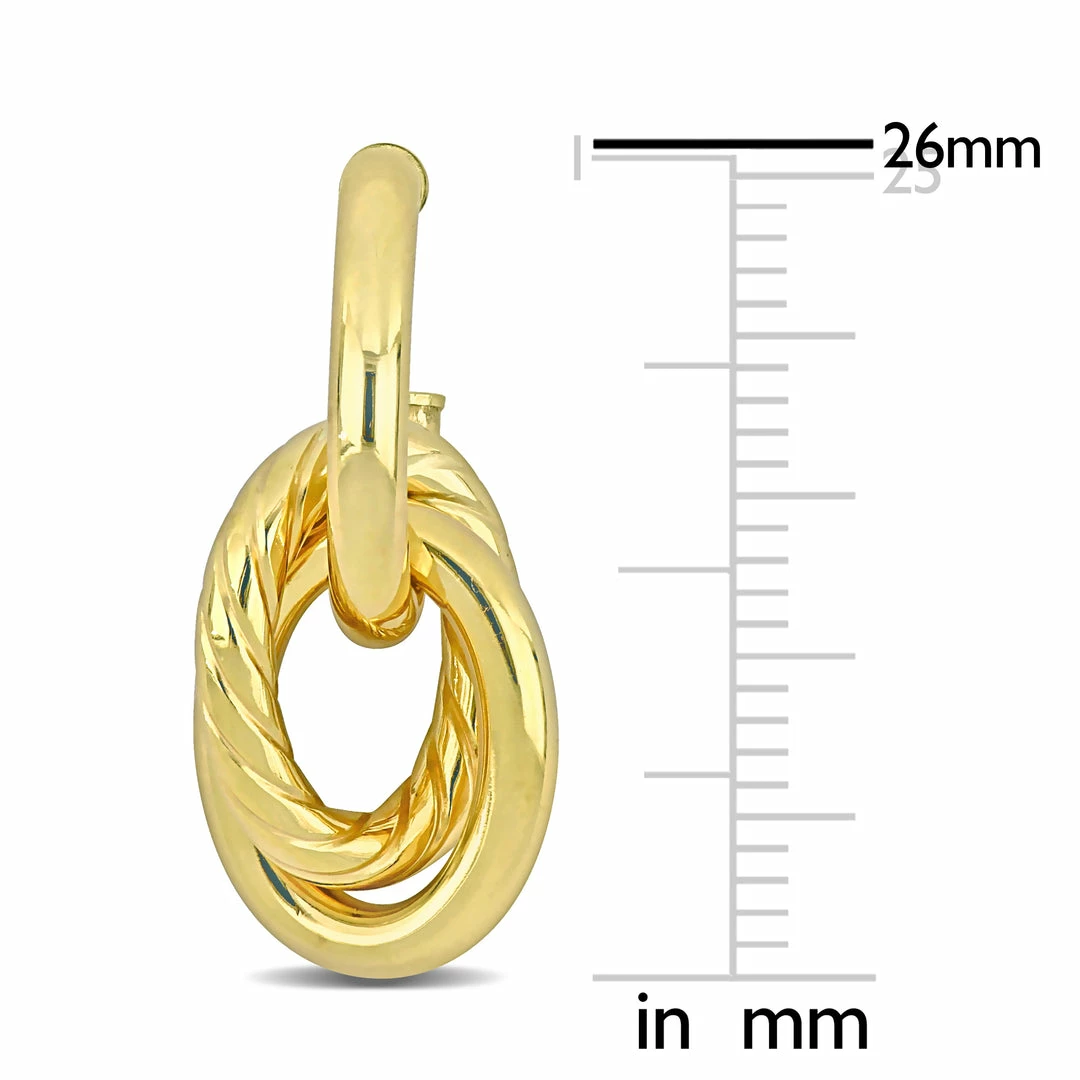 Make all her dreams come true with these gorgeous Entangled Open Hoop Earrings. Crafted in lustrous yellow gold, they feature double hoops are entangled and hung in an open hoops. Polished to a brilliant shine, these dazzling hoop earrings are comfortably secures with butterfly closures for a longer durability. These flickering earrings are the timeless addition to any jewelry collection. Make her feel like a princess with these glittering hoop earrings.
