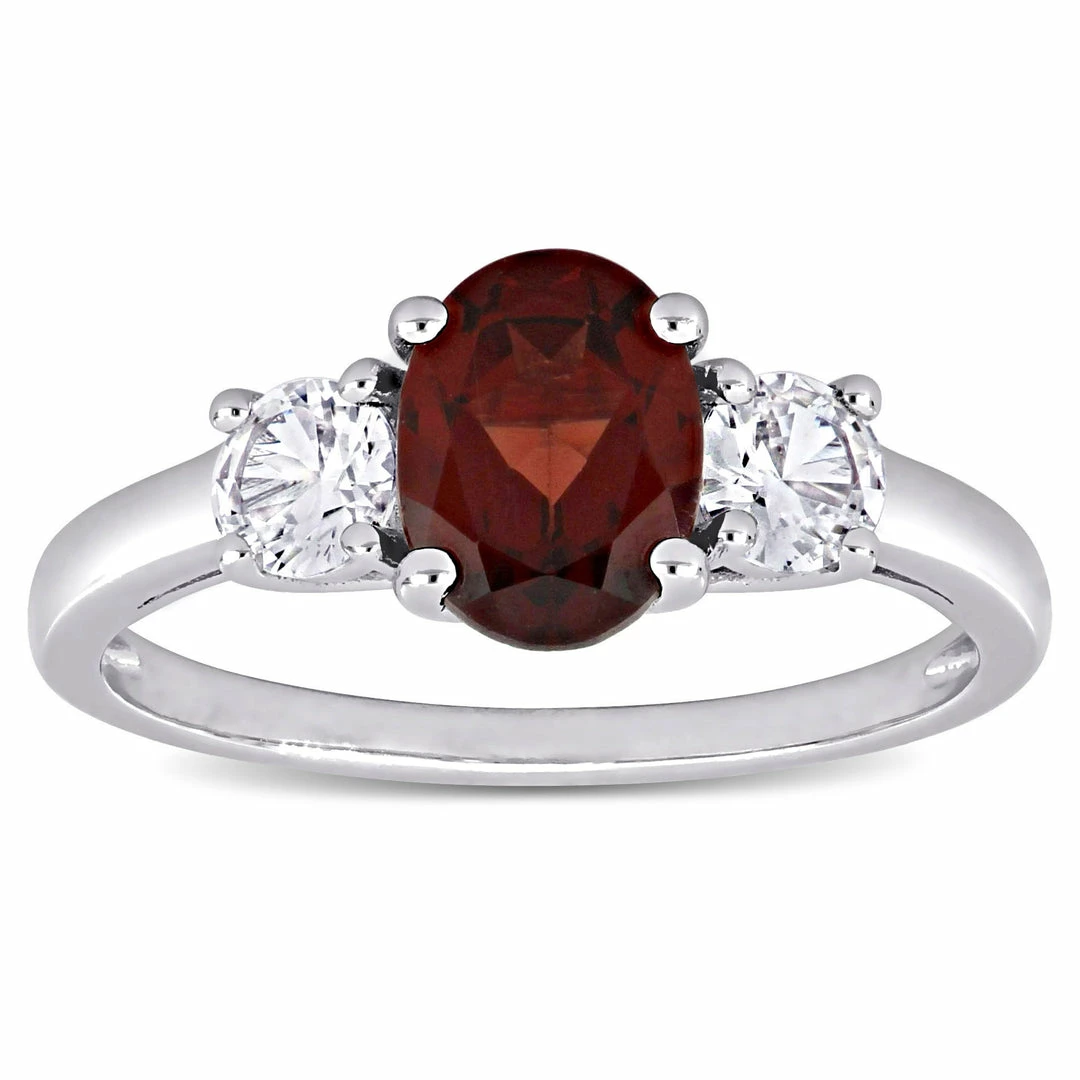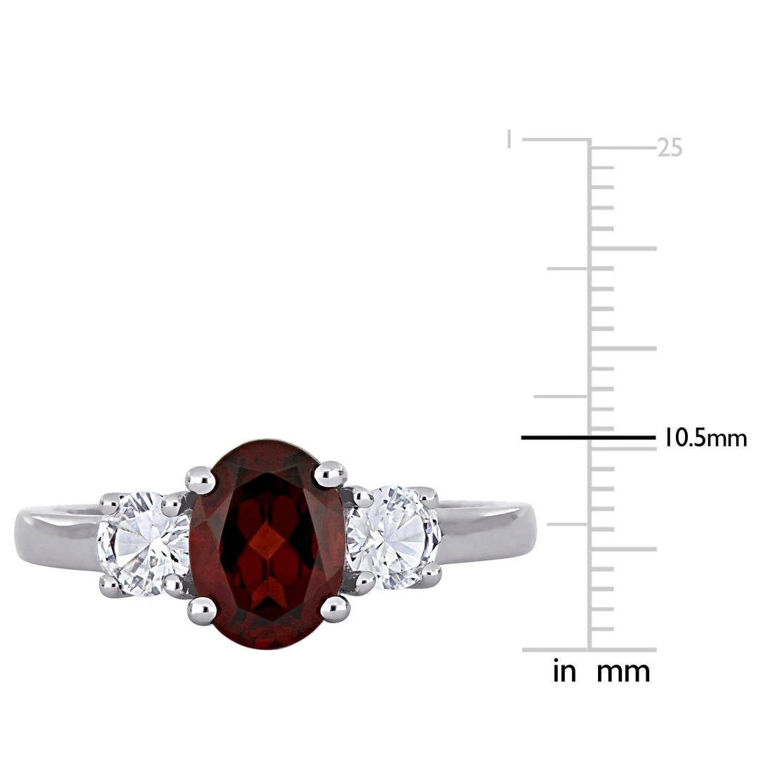 Best deal ๐ Mimi & Max Oval Cut Garnet and Created White Sapphire 3-Stone Ring in Sterling Silver for ๐ฉ women ๐